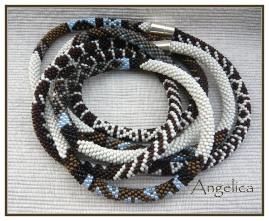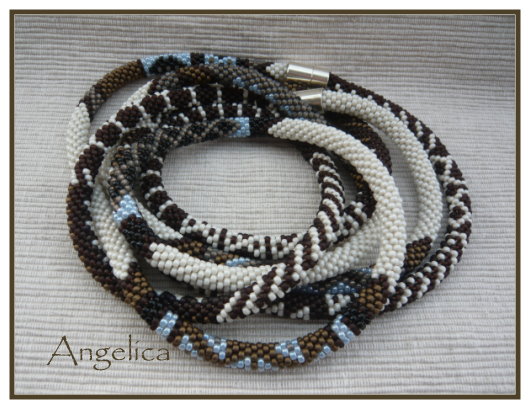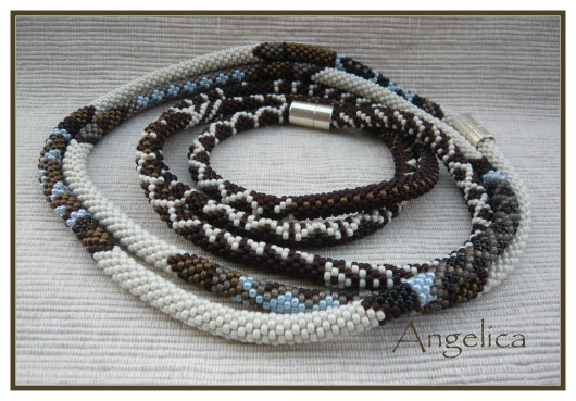 das letzte bislang fertige Muster, das aktuelle liegt bei mir noch auf der Nadel. Diesmal sehr nah an der Vorgabe, was Perlensorte und Längenangaben angeht, bei den Farben hab ich selbst Hand angelegt.