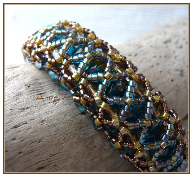die finde ich wirklich gelungen, nicht nur von meiner Seite bei der Farbwahl ( zweifarbige Sechser!, schön) sondern auch die Anleitung. Das ist mal ein Armband das komplett ist, innen schön, aussen schön und es legt sich automatisch in Armreifenform, ohne steif zu sein.