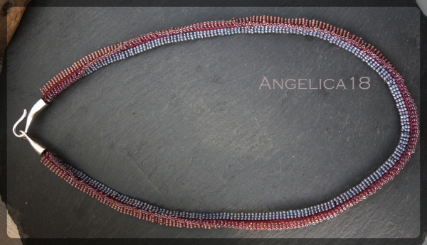eigentlich nur eine Armbandidee, aber für mich normal zu schmal und fipsig. Deshalb habe ich es doppelt gearbeitet und als Wickelarmband gefertigt.