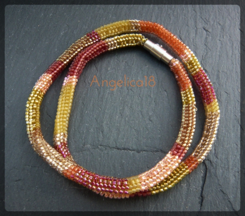 dann wollte ich ja immer mal ein gewickeltes Armband haben, naja , es nicht ganz gewickelt, sieht aber trotzdem gut aus , die Vorlage war von Debra Schwarz.