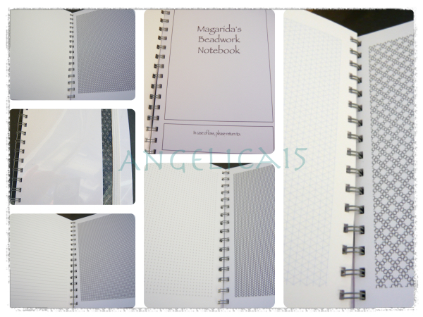Eine Freundin bekommt diesmal von mir zu Weihnachten ein BeadworkerNotebook. Ein leeres Notizbuch mit Skizzenpapier, selbst gebunden mit Drahtspirale (wegen dem Praktischersein) und verschiedenen Seiten, Grafikpapier für eigene Entwürfe in Netz, RAW, Peyote usw, liniertes Papier, gedottete und leere Seiten usw. Zum entwerfen und Ideen festhalten.