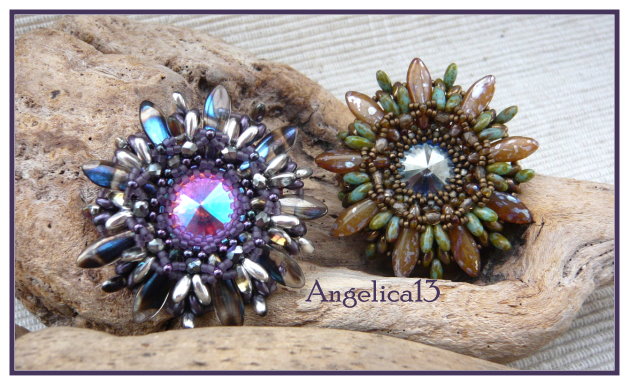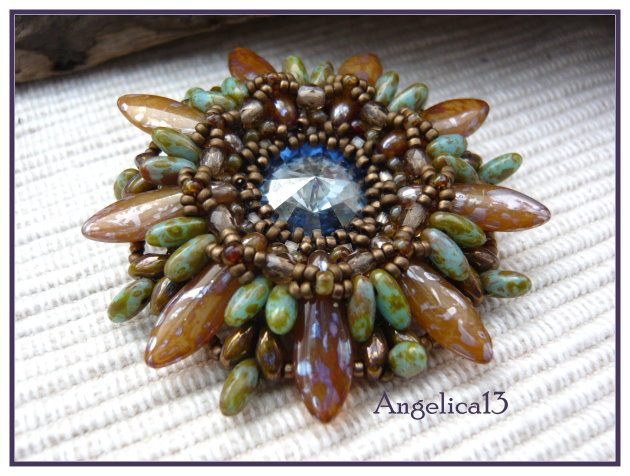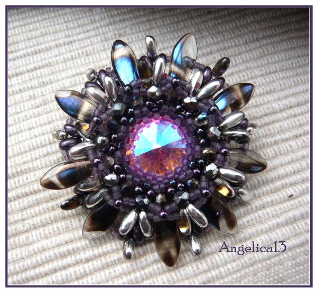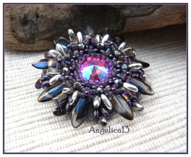 die neueste Blüte von Ellad, hab ich vor einer Woche beim Stammtisch gefädelt, ging sehr schnell und hat zu jedem Stadium Spass gemacht. Ich hab nach den gehäkelten Versuchen jetzt mal die Magic Colors von Miyuki zum fädeln genommen, sieht ebenfalls toll aus, viel Bling ohne Blink. Der Stein in der Mitte ist ein CrystalAB, aber unfoliert, der nimmt jede Umgebungsfarbe an und verändert dadurch die Optik des Anhängers.
