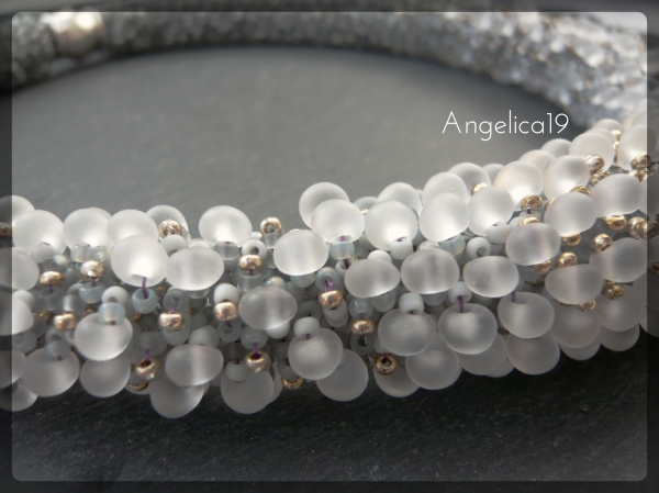die hatte ich jetzt sicher zwei Jahre auf meiner Diewürdichschonfädelnliste. Und jetzt auf der Creativa ( letztes Jahr hatte ich das erst Mal seit 15 Jahren geschwänzt) hab ich die Minos zusammengetragen. Und auch wenn RAW unfassbar langweilig ist, die ging jetzt tatsächlich mal flott. Deshalb ist sie auch doppelt so lang, dann darf sie doppelt um den Hals.