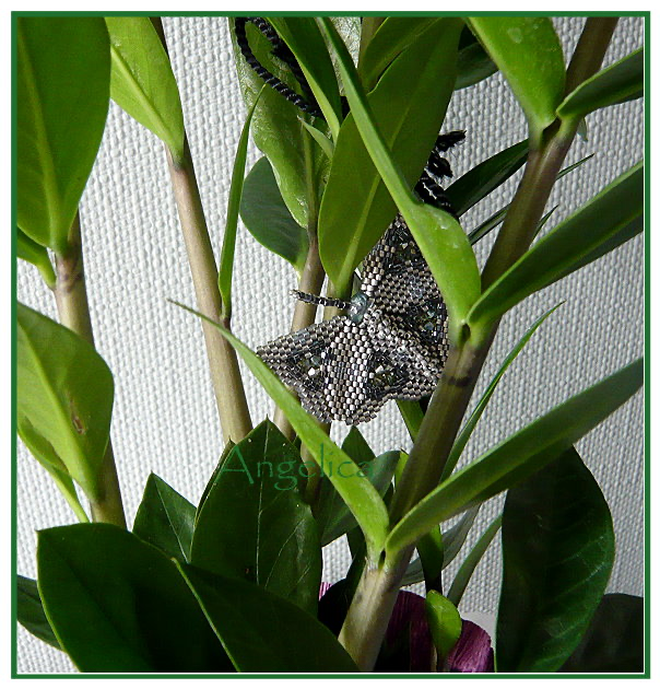 Wenn nichts geht, geht was Selbstgemachtes. In dem Fall eine gefädelte Motte nach der Idee von „Alles Meins“, in Motten- / Jugendstil- / Art decofarben, für eine begeisterte Perlerin, die seit einem Jahr hochsüchtig ist und komplett in Art Deco und Jugendstil eingerichtet ist. Überreicht wird das gute Stück stilecht an Zimmerpflanze.