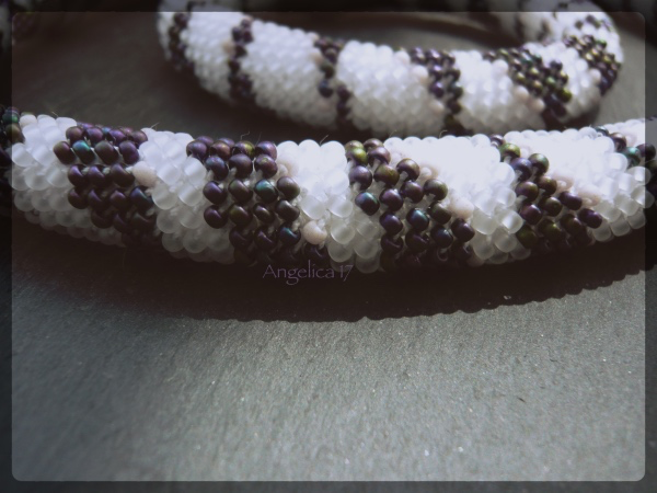 ein ganz klassisches Muster, in fast klassischen Farben (also statt schwarz-weiß ist es ein mattes crystal und ein violettes iris geworden) und ganz bewußt mit 20 er Baumwollgarn gehäkelt, dadurch ist es so weich und fluffig und aufgelöst geworden, das es noch mehr vintage aussieht. Nur die Schlösser, die sind extrem modern.