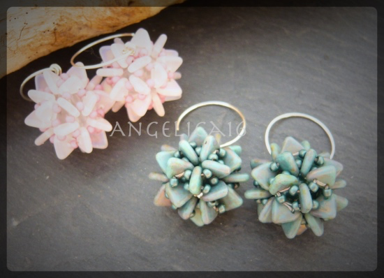 meine immer wieder gern gefädelten Beaded Beads, diesmal mit Triangels in rosa oder grün, schnell gemacht mit tollem Effekt.