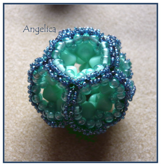 eine Beaded Beads aus Vintage Doppelpyramiden, ein Versuch, es mal anders rum zu fädeln.