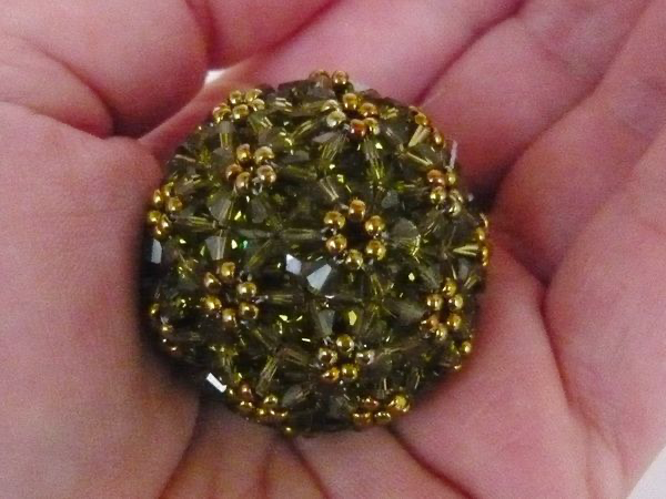 Als logische Folge der Swarokugel jetzt also Swarokugel XXL. Dreimal so groß weil dreimal so viele Perlen. Und 180 Bicones muß man erst mal unterbringen auf so’ner Kugel. Jetzt schwebt mir noch was mit 240 Bicones vor, mal schauen, wann ich Zeit finde.