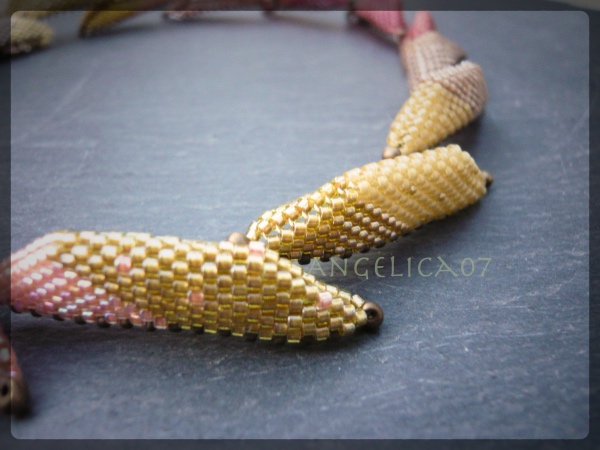 Dann lag es neun Jahre in seiner Schublade und nahm Platz weg. Und nach einem Perlentreffen (wo ich es mal rausgeholt habe) konnte ich meinen Schweinehund dazu überreden, die letzten paar Elemente fertig zu fädeln und ein Schloss zu basteln.