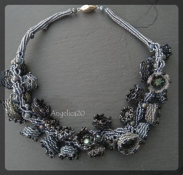 einfach mal Materialabbau. Mit türkischer Häkelkette, Herringbone, vielen kleinen Fassungen. Das Grau von Preciosa ist ein Traum.