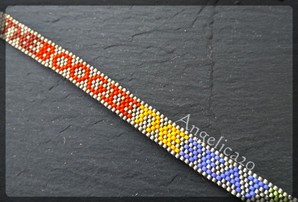 Bei Pinterest habe ich mal eines von diesen Kreuzstichstickbildern gesehen, die mit den Namen der Kindern im Flur hängen. Nur halt mit dem Text von Rappers Delight. Ich war schockverliebt. Ich kann zwar Sticken , aber genau wie Stricken gehört das Sticken nicht zu meinen liebsten Beschäftigungen. Aber dann hatte ich die Idee ein langes Peyoteband zu machen, endlos. Zwar eine Quatsch-Spielerei, aber wir hatten ja Zeit in diesem ersten Coronajahr.